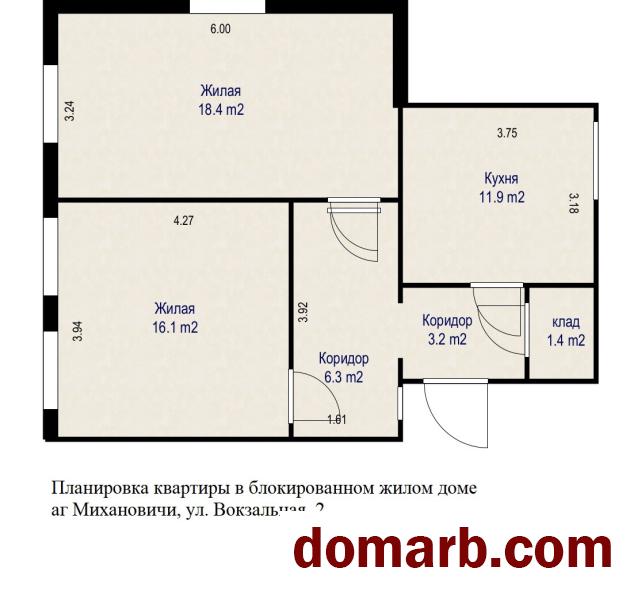 Продается двухкомнатная квартира, общей площадью 57.3 м.кв. по СНБ, в блокированном одноуровневом доме на две квартиры с отдельным входом, аг Михановичи, ул. Вокзальная, д.2