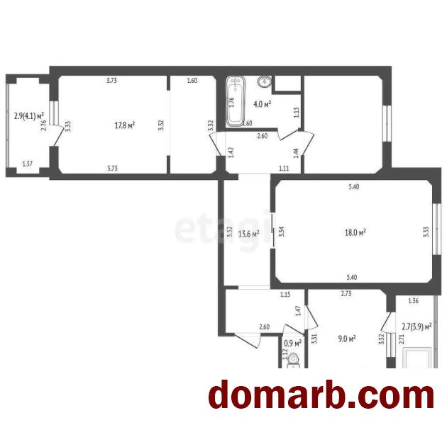 Общей площадью по СНБ-77,9 м2/общей-72,9 м2/жилой- 44,8 м2/ кухней-9,1 м2 с выходом на застекленную лоджию с подвалом.