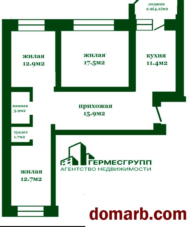 Общая площадь данной квартиры 76 м2; жилая 43.1 м2; кухня 11.4 м2.