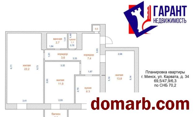 69,5 м2 (по СНБ – 70,2 м2) общей площади, включая 47,9 м2 жилой зоны