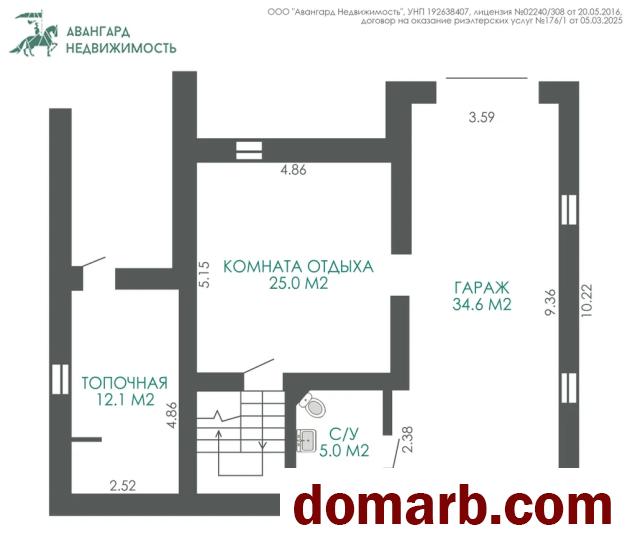Цокольный этаж: гараж, оборудованный под тренажерный зал 34.6 м2, комната отдыха, санузел и топочная (отдельный вход с улицы).