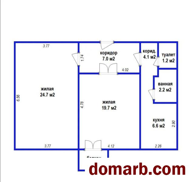 - 2 просторные комнаты: 24,7 кв.м., 19,7 кв.м.
