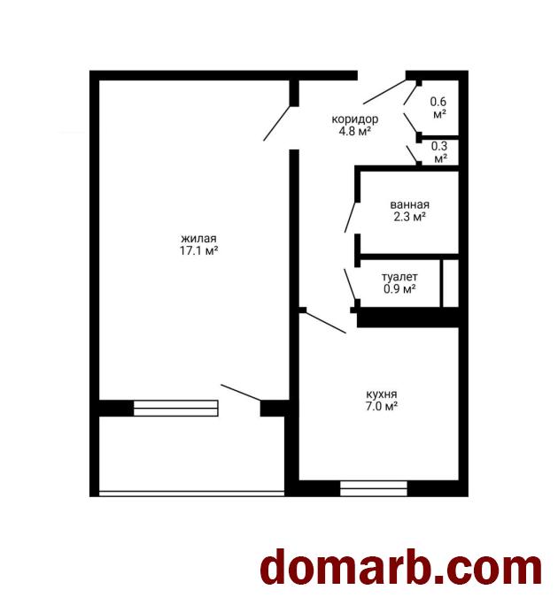 Площадь – 35,1 кв.м. по СНБ, 33 кв.м. – общая.
