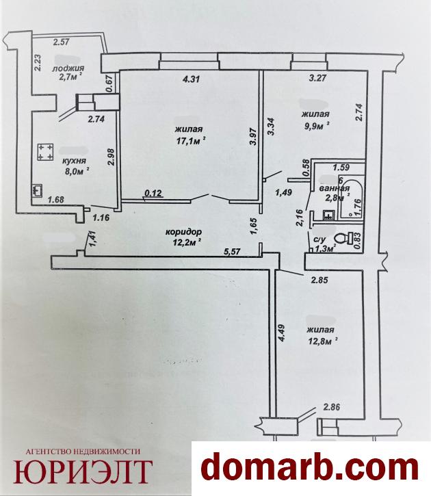 На полу ДСП и ламинат. Две большие лоджии. Окна частично ПВХ. Требуется ремонт.