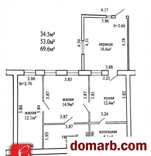 Продаётся 2-х комнатная квартира с отдельным входом в 8-ми квартирном деревянном блокированном жилом доме.nг.п. Руденск, ул. Дукорская,20 nПуховичское направление. 30.3 км. от МКАД. 10 минут пешком до ж/д вокзала Руденск.nnДом бревенчатый 1967 г.п. Крыша – двускатная (шифер).nПлощади квартиры: 53/34,5/12,4 м2. nВеранда, кухня, котельная, гардероб, ДВЕ комнаты. Входная дверь - деревянная. nВеранда: стены - газосиликатный блок. Пол - отсутствует. Потолок – деревянный (черновая доска). Окно - ПВХ. nКухня, комнаты: пол - доска (черновая). Стены - гипсокартон. Потолок - пластик. Окна - ПВХ. nКотельная, гардероб: пол - доска (черновая). Стены - гипсокартон. Потолок - пластик. Межкомнатные двери - МДФ. Электричество есть. Газ (центральный) – подведён к дому. Отопление - котёл на твёрдом топливе. Батареи чугунные, разведены по дому. Вода (центральная, холодная) – 10 метров от дома. Туалет на улице. Сарай. nnСпокойное место. Хорошая инфраструктура. nХорошее транспортное сообщение с Минском.nУП "Мольнар", УНП 101107535, лицензия 02240/11 от 17.02.2005г., договор на оказание риэлтерских услуг 600/1 от 01.12.2025 г.