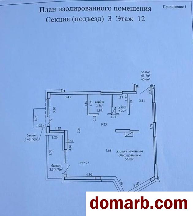 Площадь по СНБ — 65,6 м. Свободная планировка позволяет реализовать полноценную 3-комнатную квартиру или евротрёшку с кухней-гостиной и двумя отдельными спальнями.