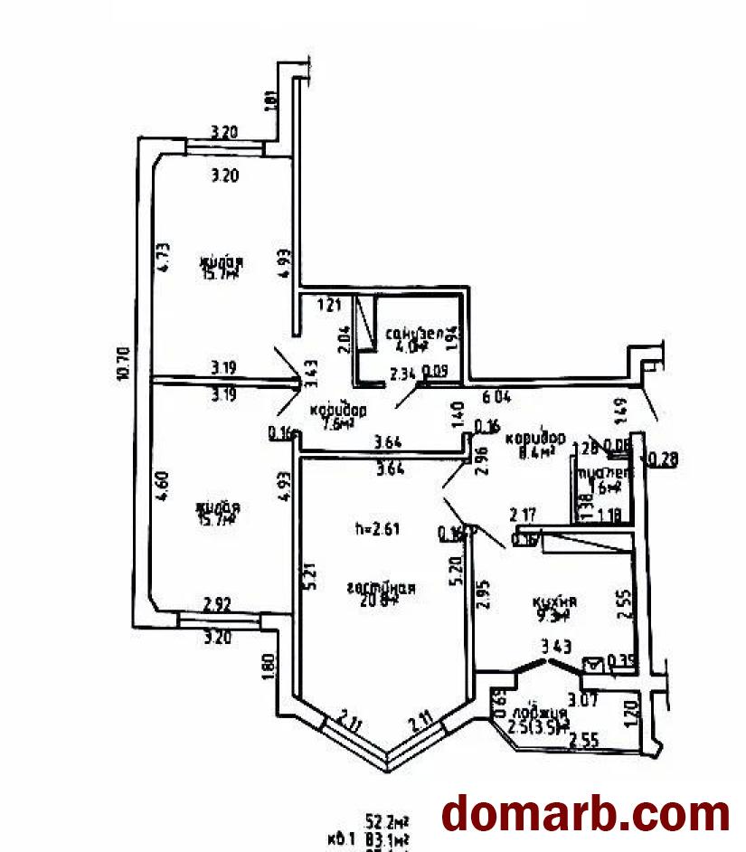 Прекрасная планировка! Общая площадь квартиры по СНБ составляет 85,6 кв.м., жилая 52,2 кв.м., кухня 9,3 кв.м., Высота потолка - 2,61м.