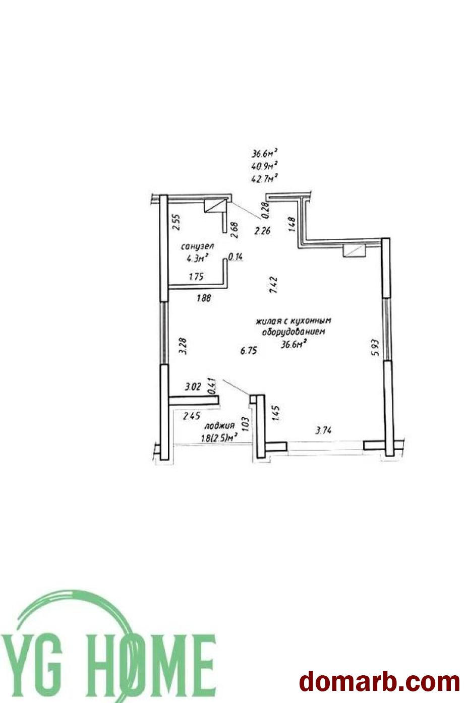 Малоэтажный дом! Квартира на 9 этаже из 10! Красивый урбанистический вид! Идеальная планировка - площадь общая по СНБ 42,7м2/общая 40,9м2/жилая 36,6м2!