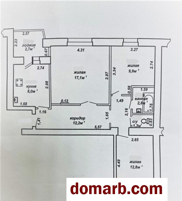 На полу ДСП и ламинат. Две большие лоджии. Окна частично ПВХ. Требуется ремонт.