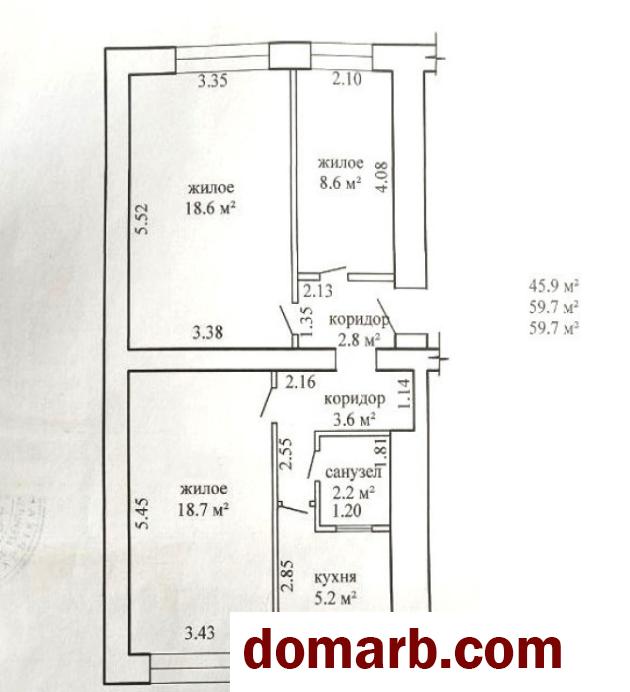 Продается светлая 3-комнатная квартира в г. Ляховичи, ул. Строителей д.4. Расположена на 2-ом этаже 5-го кирпичного дома 1978 года постройки. Общая площадь - 59,7 м², жилая - 45,9 м², кухня - 5,2 м². Квартира в аккуратном состоянии, частично сделан косметический ремонт: