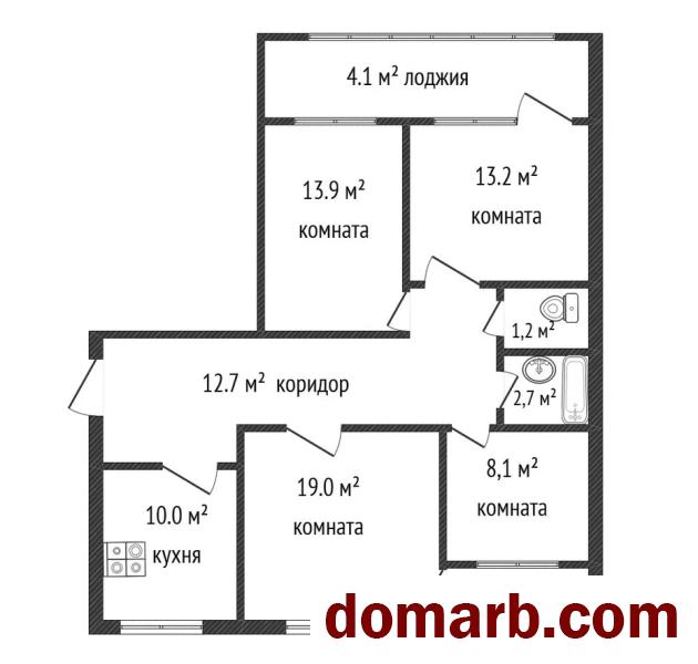 Изолированные жилые комнаты площадью 19 м², 13,9 м², 13,2 м² и 8,1 м².