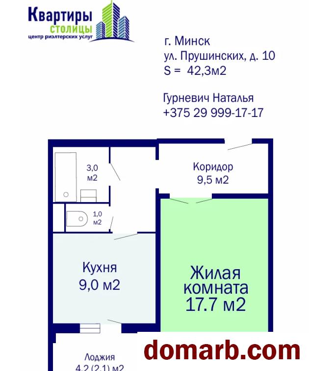 Метраж квартиры: по СНБ 42.3 м2, общ. 40.2 м2, жил. 17.7 м2, кухня 9 м2