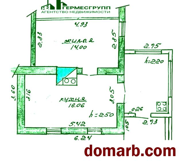 Общая площадь 30 м2, жилая 14 м2, кухня 16 м2.