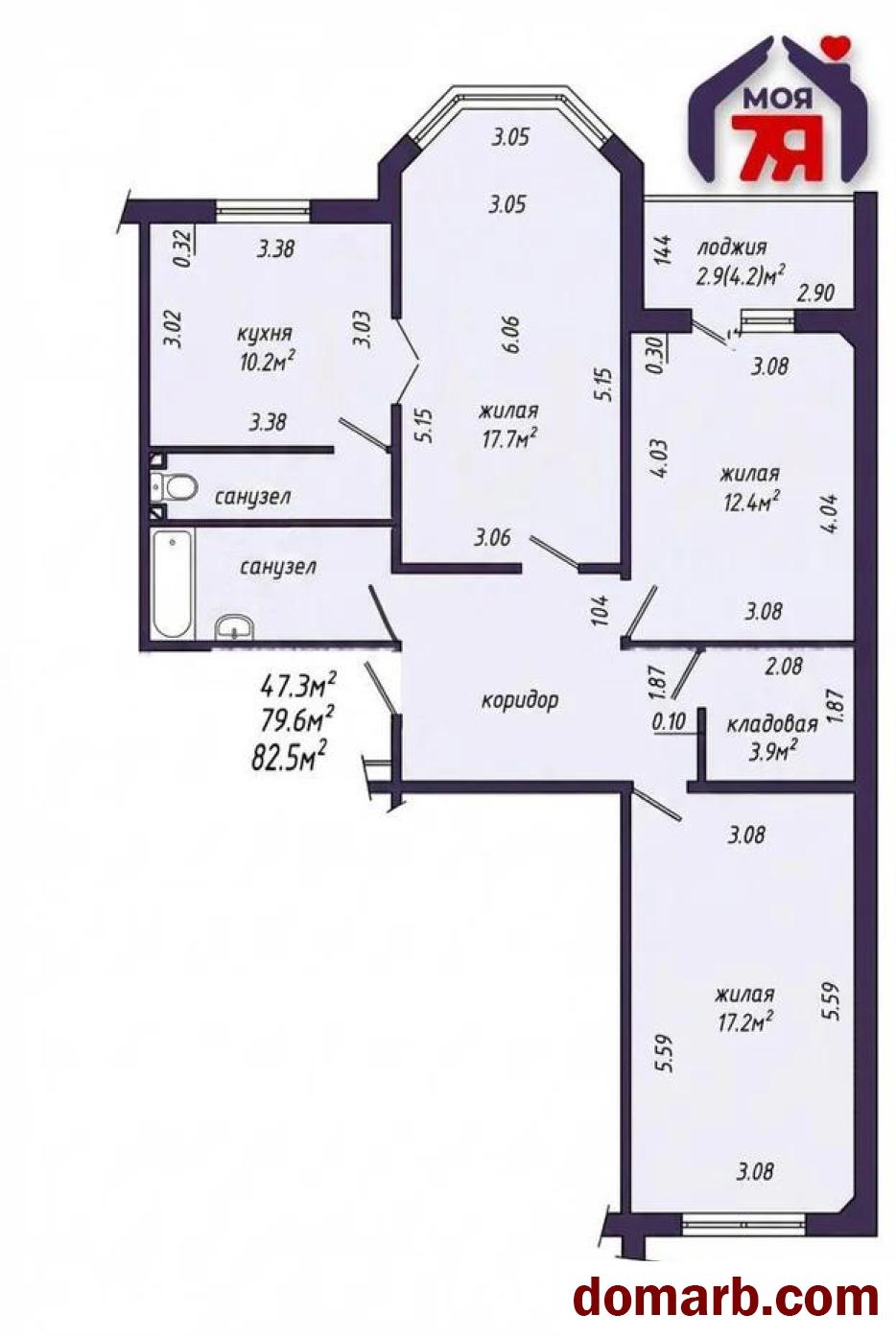 -Квартира расположена на комфортном 4 этаже 10-этажного дома. Общая площадь по СНБ — 82,5 м2, жилая — 47,4 м2.