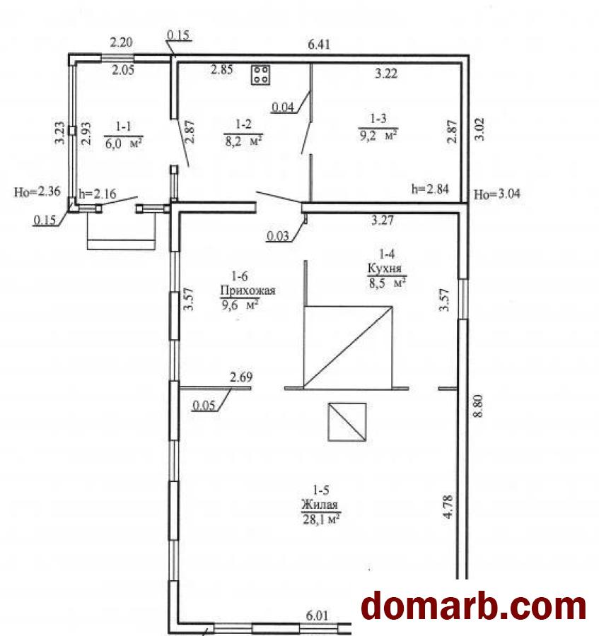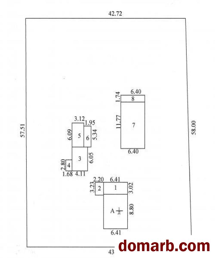 Жилой дом из бруса, покрашенного снаружи размером 6,4 на 8,8 м на бутовом фундаменте с дощатой пристройкой 26 кв.м. (кладовой, прихожей и верандой). В доме 3 комнаты, отапливаемые печкой "групкой" и русской печью-лежанкой.