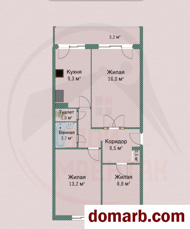 Площадь по СНБ – 64,2 кв.м., общая 61,0 кв.м., кухня – 9,3 кв.м.