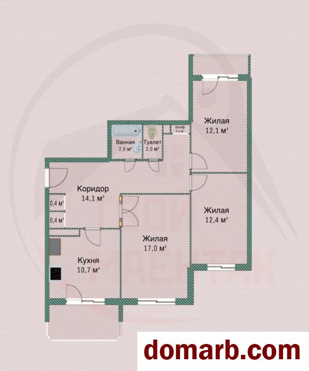Гостиная- 17 м2, спальня -12,1 м2 (с выходом на лоджию), детская -12,4 м2.