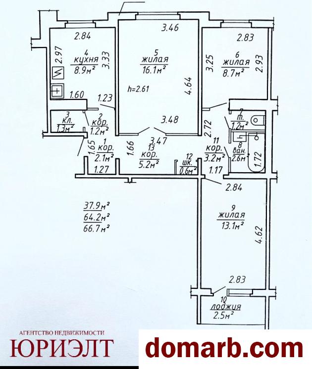 Общая площадь 66.7 м