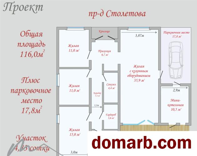 Общая площадь дома — 116,0 м², плюс крытое парковочное место 17,8 м².