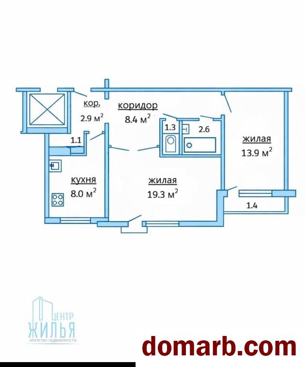 Площадь: 59/57,5/33,2 м.кв. (Кухня 8,0 м.кв.)