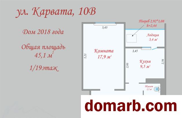 • площадь 45,1 м², где комната 17,9 м² и кухня 9,5 м²;