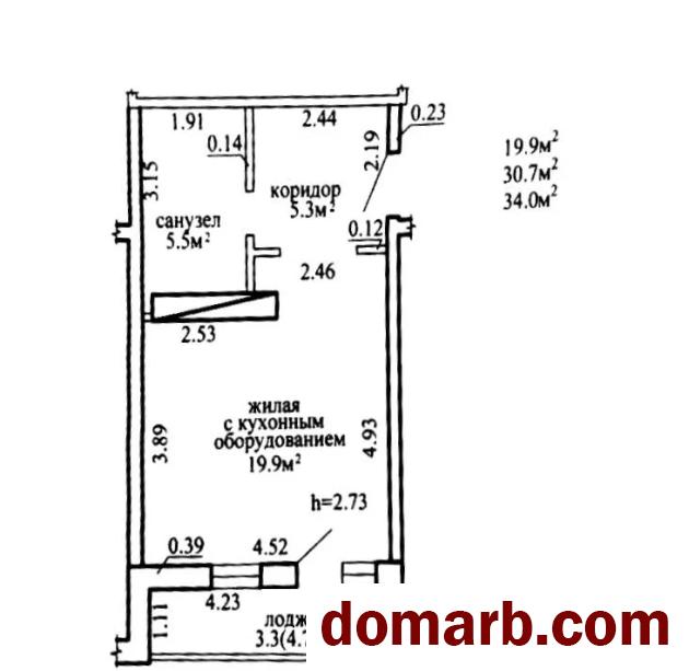 Высота потолка – 2,73 м