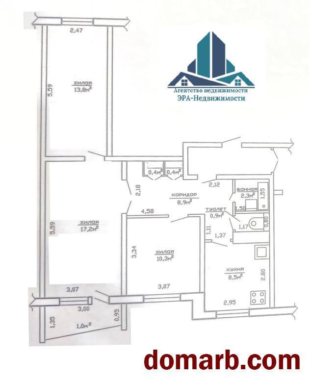 Общая площадь квартиры 62,7 м.кв., в квартире 3 просторные комнаты (17.2/13.8/10,3), балкон 3,3 м кв, большая кухня 8,5 м.кв., раздельный санузел, просторный коридор, установлены счетчики на воду, проведен телефон, интернет, сигнализация. Окна выходят на две стороны.