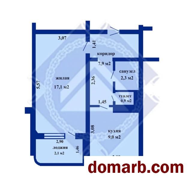 Общая площадь 37,2 кв. м. (39,3 по СНБ). Жилая площадь 17,1 кв. м.