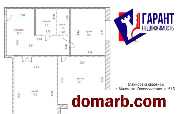 Квартира расположена на 1-ом высоком этаже 19-этажного дома. Современная, рациональная планировка: кухня – 9,5 м.кв., комнаты – 17,9 и 13,1 м.кв., коридор – 12.1 м.кв.