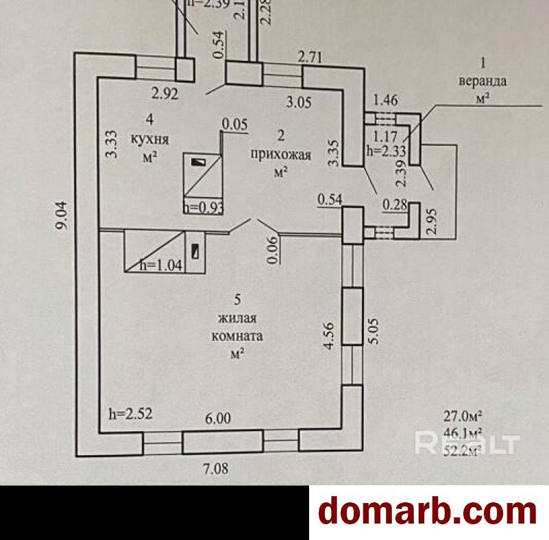 - Общая площадь 52,2 кв.м.,