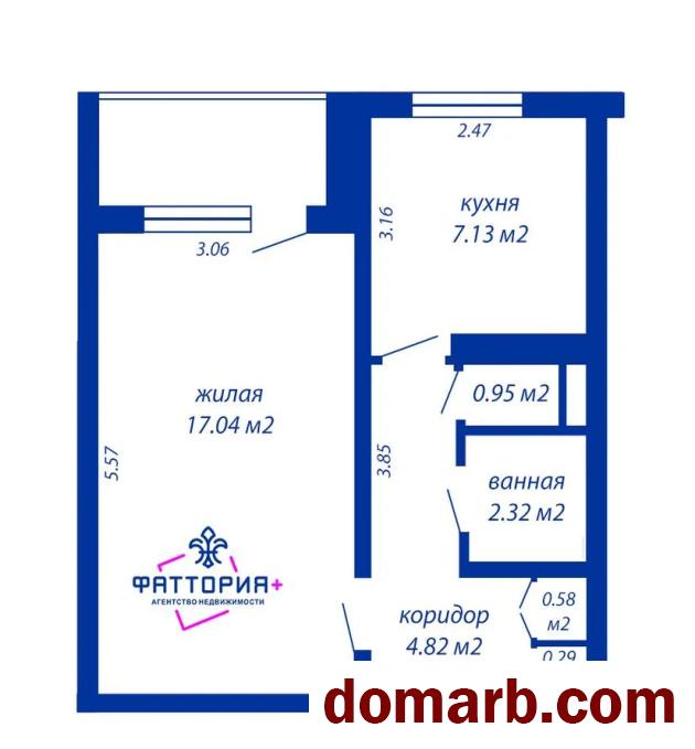 Планировка: комната 17,4 м2 с выходом на большую застеклённую лоджию, кухня 7,2 м2, раздельный санузел и удобный шкаф в коридоре.