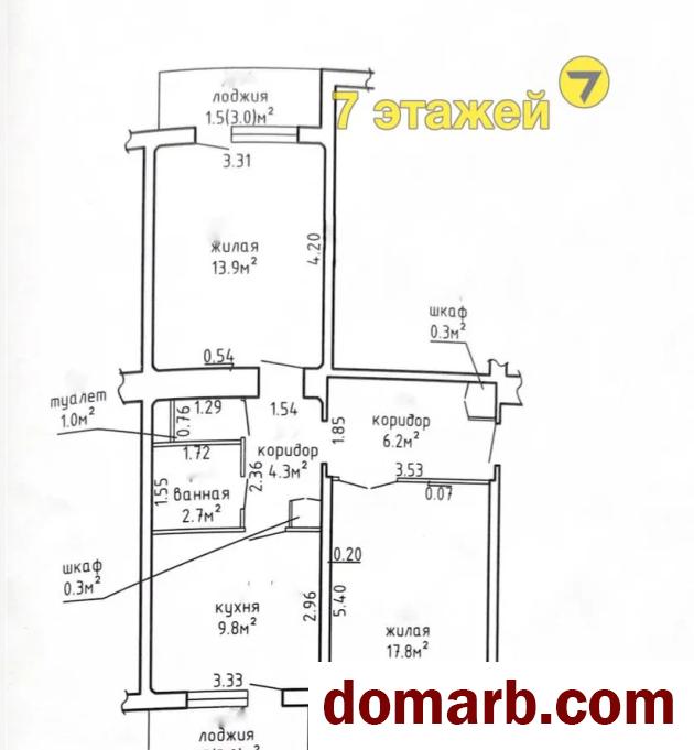 Общая площадь 59,2 м² (по СНБ), жилая 56,2 м². Комнаты 17,8 м² и 13,9 м² (окна выходят на разные стороны, хорошая освещённость и проветриваемость).