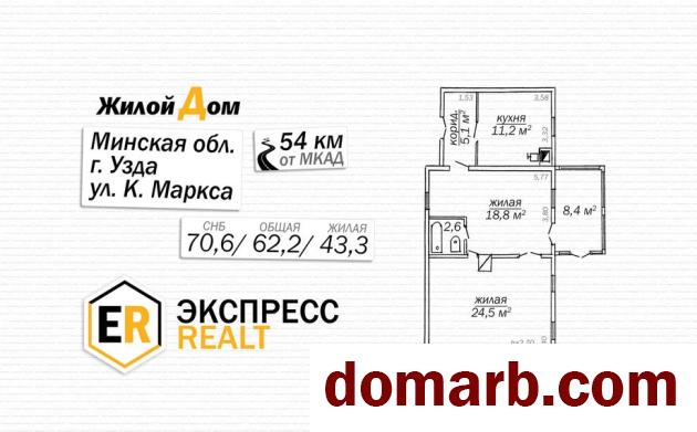 В уютном уголке города Узда, на улице Карла Маркса, расположился комфортный дом, который ждет своего нового владельца.n____________________nЭтот одноэтажный бревенчатый дом, обложенный кирпичом, был построен в 1949 году и сохранил свое очарование и уют.nПлощадь дома составляет 70,6 кв. метра по СНБ, общая площадь – 62,2 кв. метра, жилая площадь – 43,3 кв. метра, а кухня занимает 11,2 кв. метра. В доме три жилых комнаты, кухня, санузел и веранда. Окна оснащены стеклопакетами ПВХ, что обеспечивает тепло и тишину в доме.nОборудованный санузел и все необходимые коммуникации, включая природный газ, центральный водопровод, канализацию и электричество, делают этот дом удобным для проживания. Отопление паровое на газу.n nЗемельный участок площадью 9,9 сотки находится в пожизненно наследуемом владении и ухожен.n nПрекрасное месторасположение дома в живописном и тихом районе города Узда, рядом с парком Победы и историко-краеведческим музеем, создает идеальные условия для спокойной и комфортной жизни.nРазвитая инфраструктура города включает стадион, школы, детские сады, гостиницу, физкультурно-оздоровительный комплекс с бассейном и множеством секций для занятия спортом и оздоровления. Также в городе имеются дворец культуры, рынок, поликлиника, банк, магазины и аптеки. В пешей доступности находятся живописные виды реки Уздянка, где в летнее время можно купаться и загорать.nХорошее транспортное сообщение с Минском, автовокзал в центре города и маршрутные такси делают этот дом удобным для проживания и отдыха. Это лучшее место для тихой и комфортной жизни!n nПриглашаем вас на осмотр! Наша команда поможет вам продать вашу недвижимость для покупки этого дома и ответит на все ваши вопросы. Звоните или пишите, не откладывая на потом!n____________________nООО «Экспресснедвижимость-риэлт», УНП 193505113, лицензия №02240/409 от 05.03.2021, договор на оказание риэлтерских услуг № 10/7 от 16.12.2024.