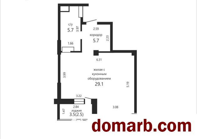Общая площадь - 40,5 м² (по СНБ - 43,3 м²).