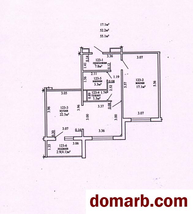 Площадь квартиры указана по СНБ, без учета лоджии общая площадь 52,2 кв.м. Первый высокий этаж.