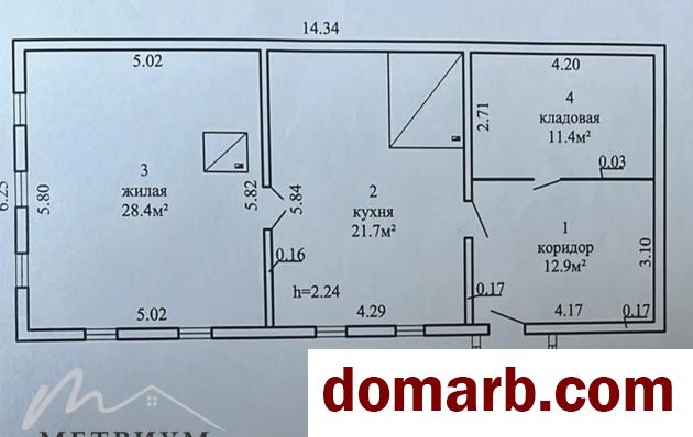 В доме жилая комната 28,4 кв.м., кухня 21,7 кв.м и коридор 12,9 кв.м. Есть электричество.
