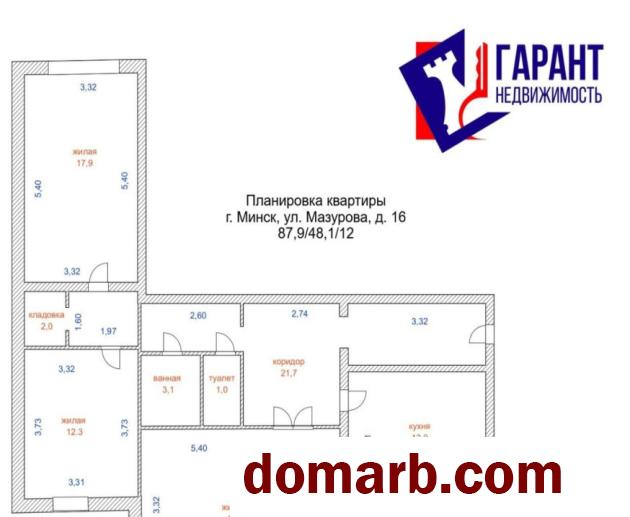 Улучшенная планировка: большая кухня 12 кв.м. с выходом на застекленную лоджию, все изолированные комнаты 17.9 кв.м, и 12,3 кв.м, просторный коридор 21.7 кв.м.