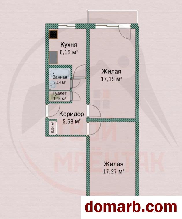 Две просторные комнаты – 17,19 и 17,27м2, кухня 6,15 м2, вместительный коридор, раздельный санузел.