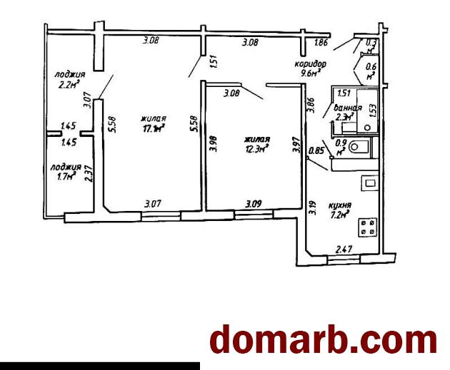 В квартире 2 жилые комнаты. Общая площадь по СНБ - 54.2 кв.м. Две застеклённые лоджии.