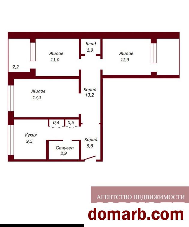 Общая площадь - 74,9 кв.м., жилая - 40,5 кв.м., кухня - 9,4 кв.м.